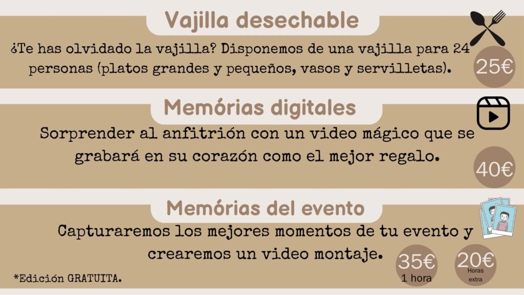 ¿Si pudieras pedir un deseo de qué no puede faltar en tu celebración privada, qué sería? Queremos cumplir todos tus deseos, por eso te proponemos un listado de servicios extras de los que puedes disponer en tu espacio privado.
