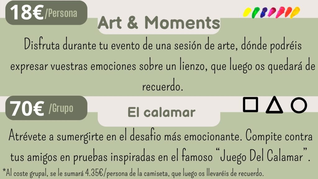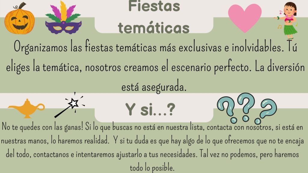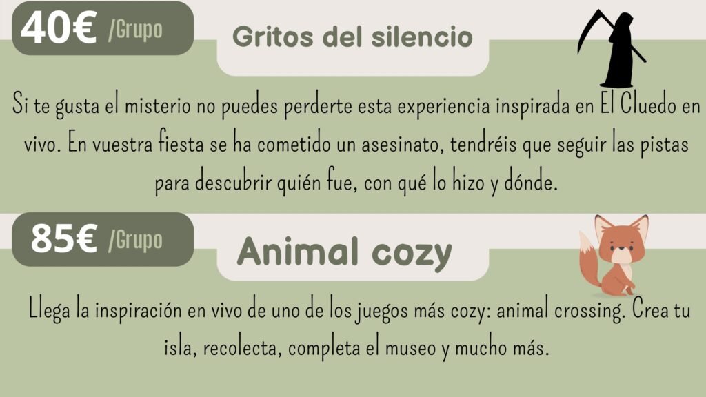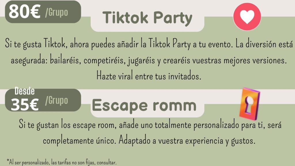 Te facilitaremos todo lo necesario para que podáis llevarlo a cabo de una forma sencilla y divertida. Podréis realizar diferentes juegos, actividades, escape rooms, talleres…
